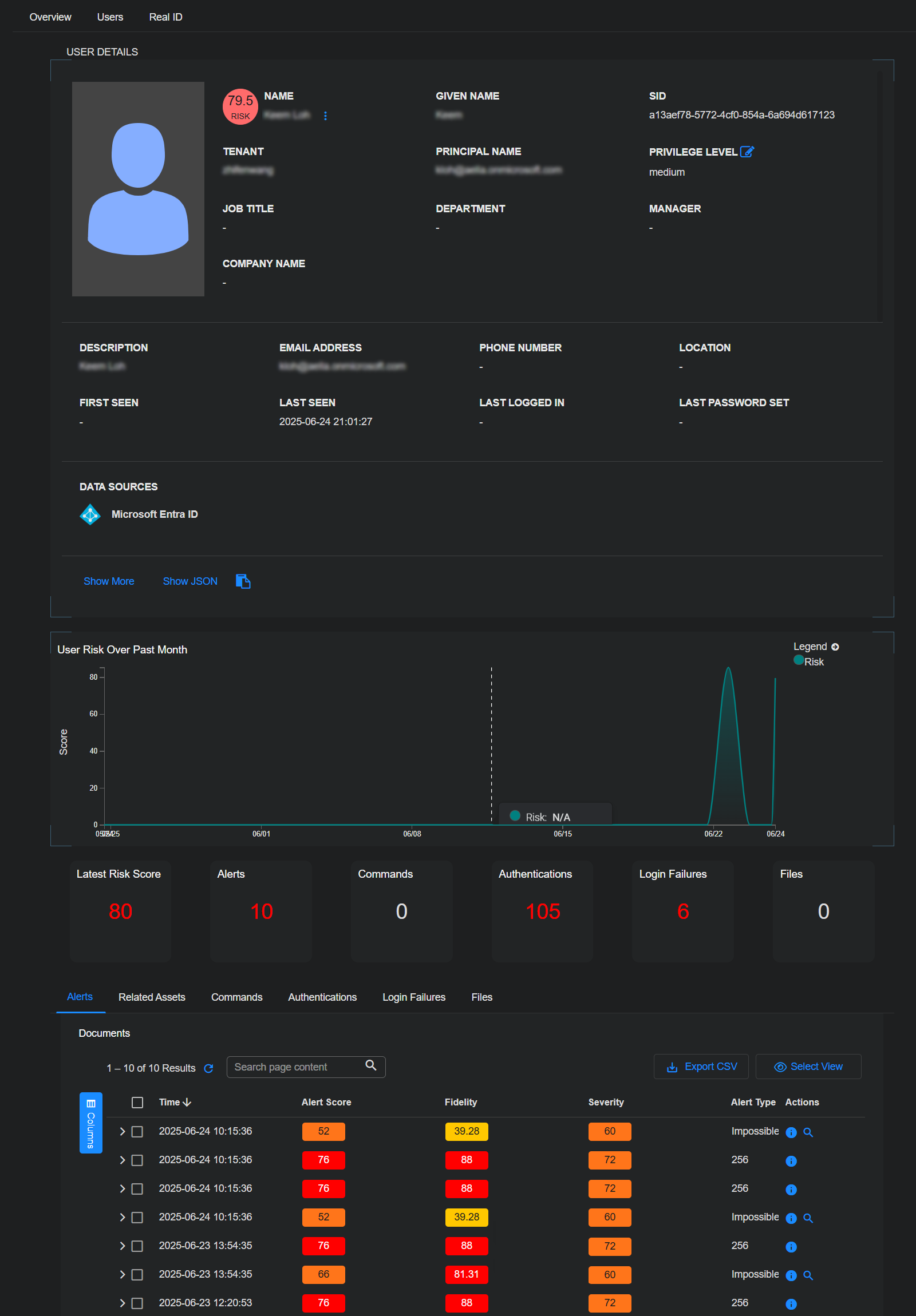 You can see the details Stellar Cyber has collected about the user, including what's been ingested from connected sources.