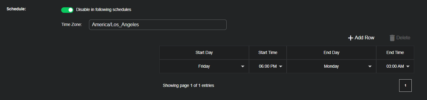 3. Use the table that appears to schedule windows of time where the playbook does not run.