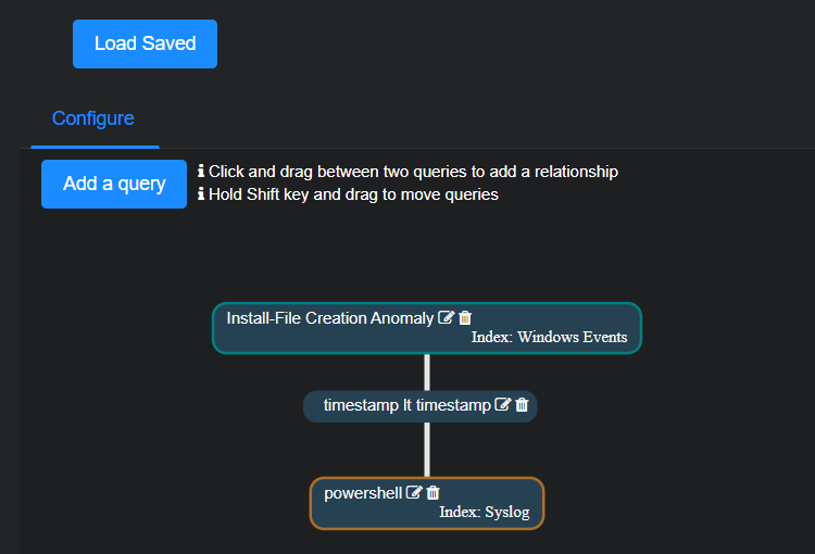 2 – Build detection logic   Create or load your query or correlation in the Query section.   See Build a Query or Build a Correlation.