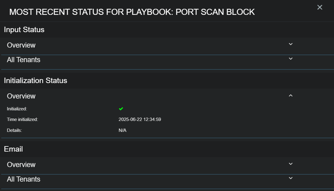 Initialization Status: This section shows whether the playbook initialized successfully before execution. Initialization confirms that the playbook configuration is valid and that all required components are available.