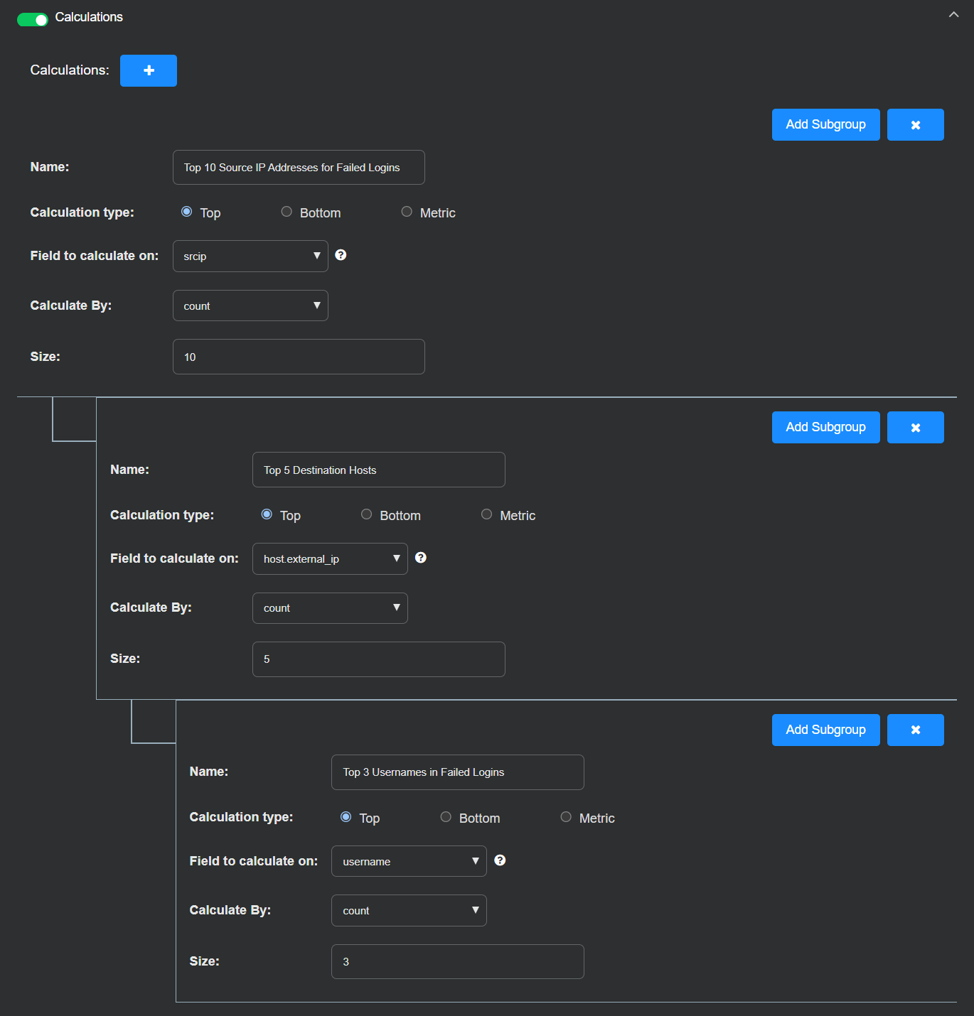 3 – Refine query results   Optionally perform mathematical operations and aggregate data returned in your query results in the Calculations section.   See Add Calculations (Optional).