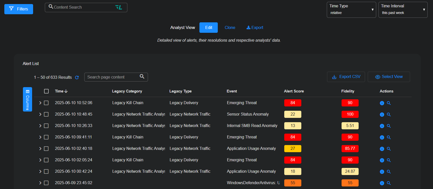 The Dashboards | PREDEFINED | Analyst View provides a simple table listing all of the events in a specified time frame. It provides a simple view to make it easy for you to focus on the events that are important to you.