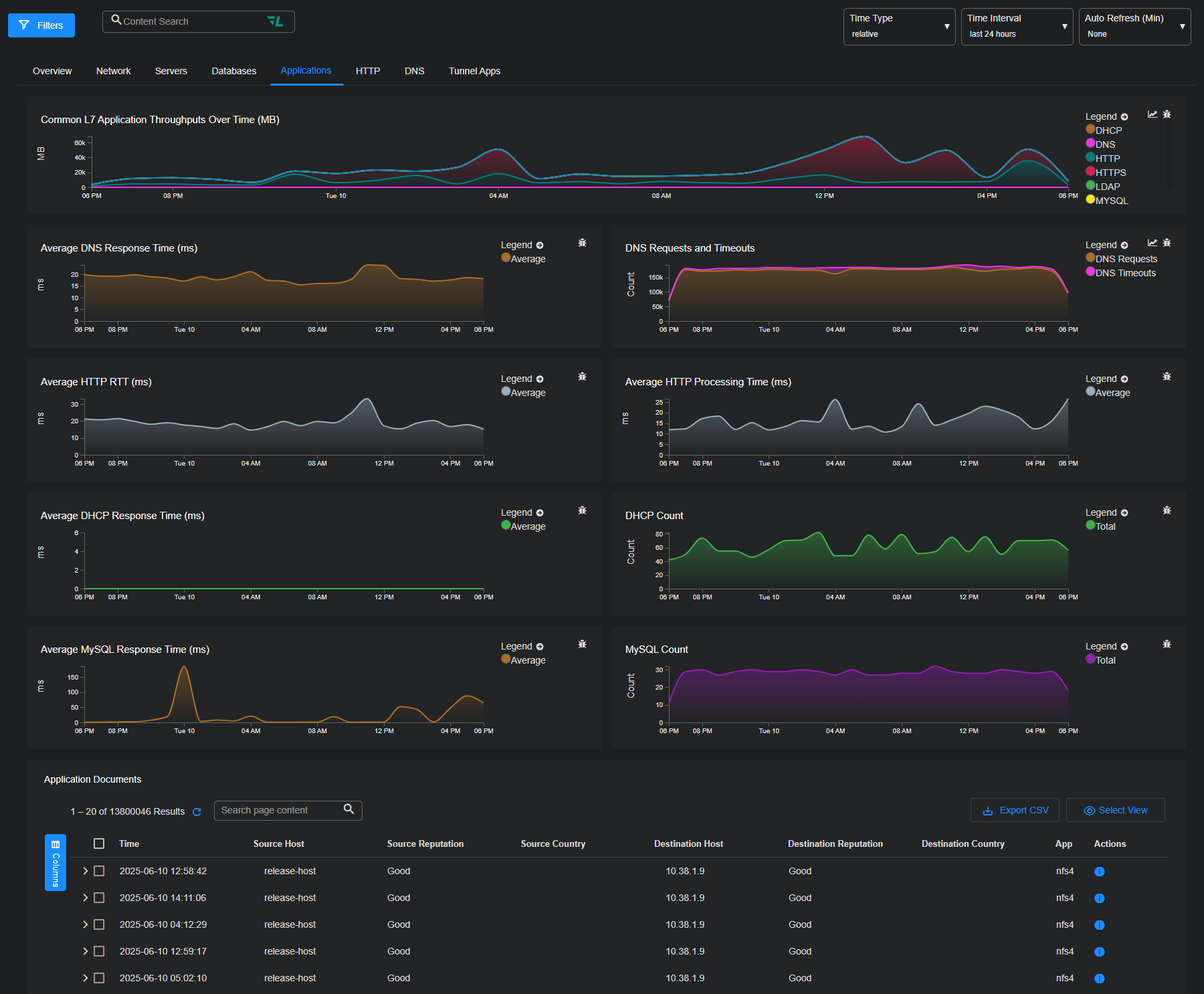 L7 Applications by total MB – This pie chart calls out the top applications operating in the network.
