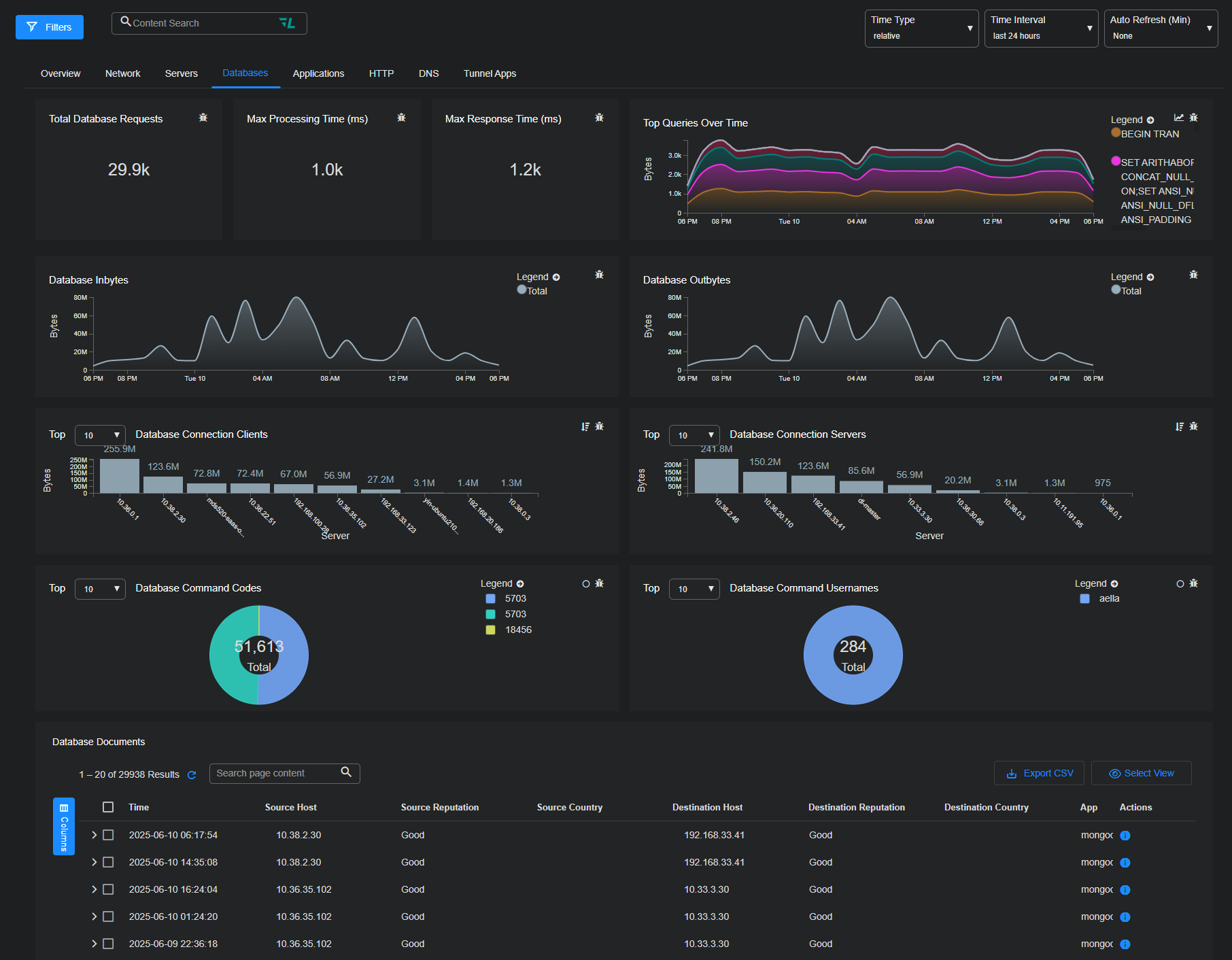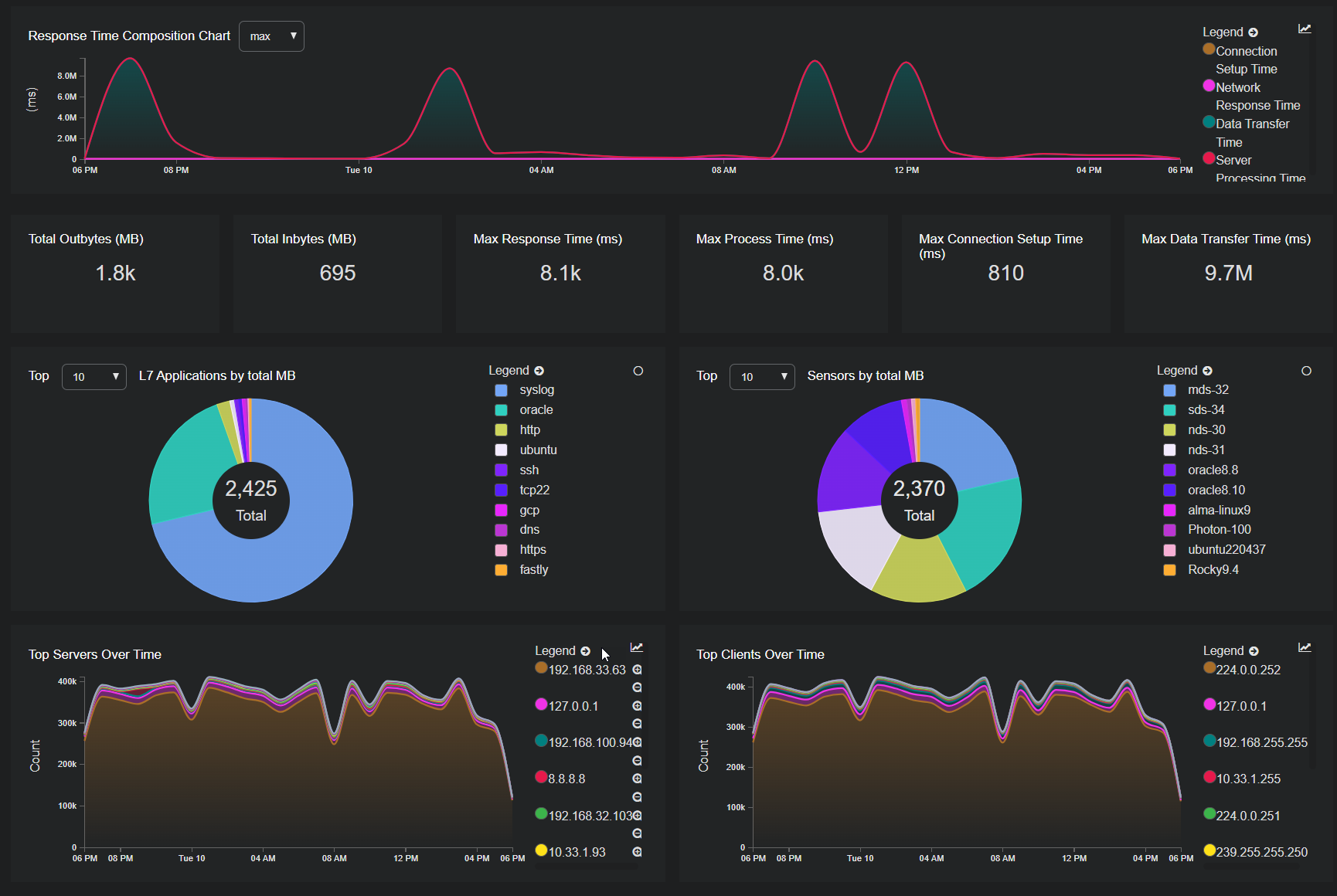 Sensors by total MB – A pie chart that shows which sensors in the network processed the most data.