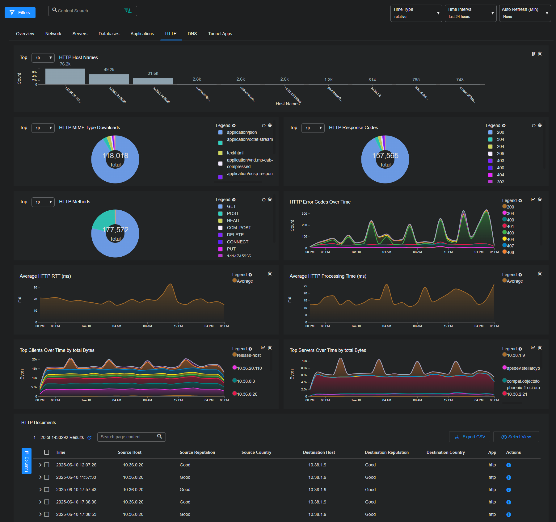 Top Clients Over Time—This plot shows which client hosts transferred the most data over the given time period.