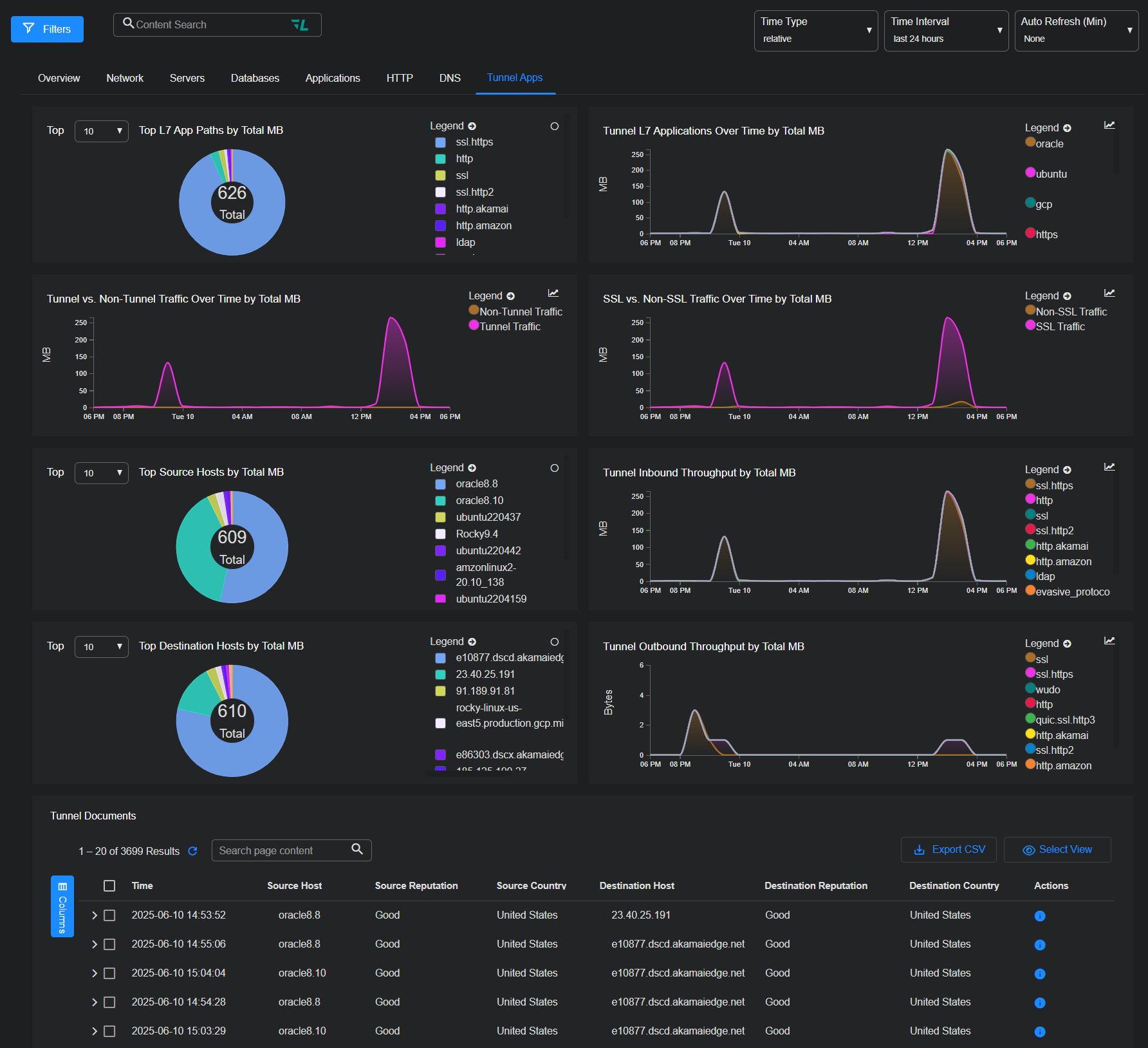 Tunnel vs. Non-Tunnel Traffic Over Time by Total MB