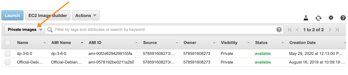 A list of existing AMIs appears.