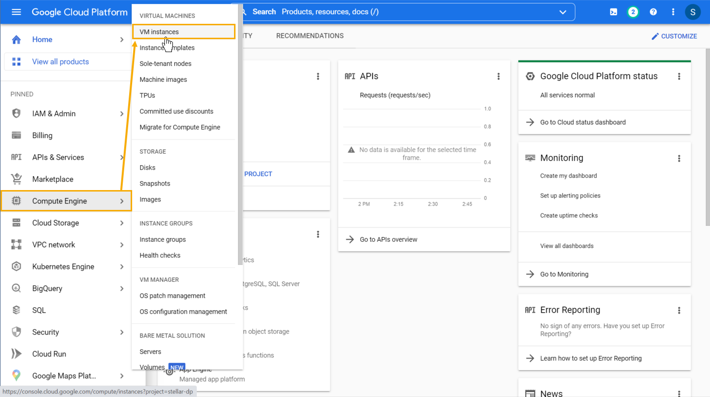 Select the Compute Engine | VM instances entry from the left navigation panel.