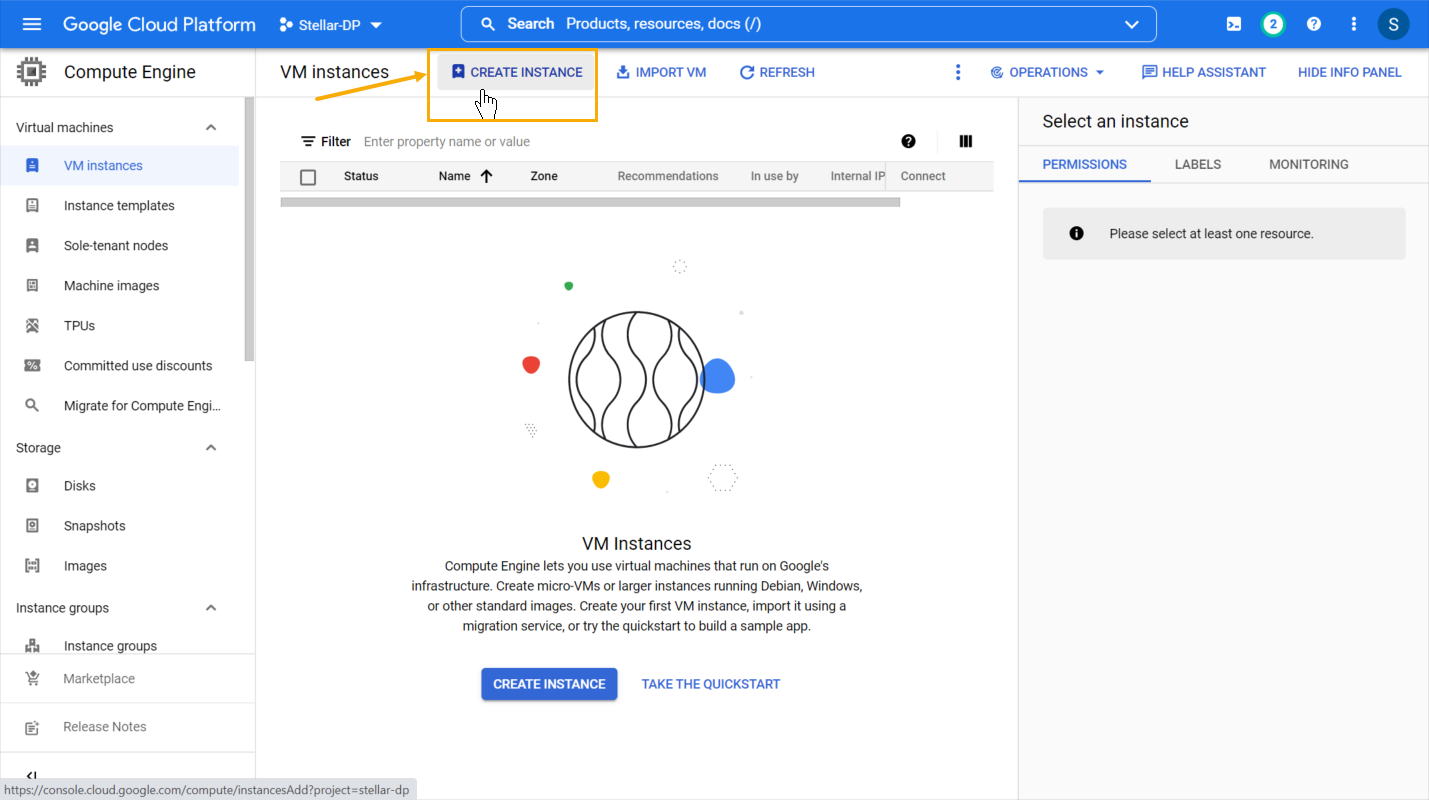 Click the SELECT A PROJECT button and choose the stellar-official-images project.