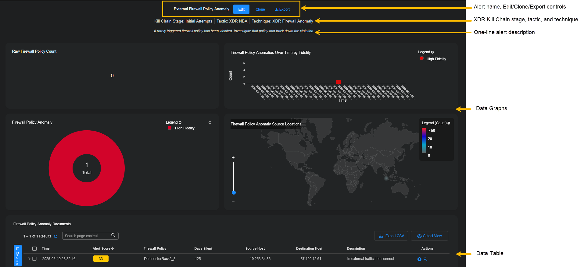 Alert Name – The name of the alert (for example, External Firewall Policy Anomaly).