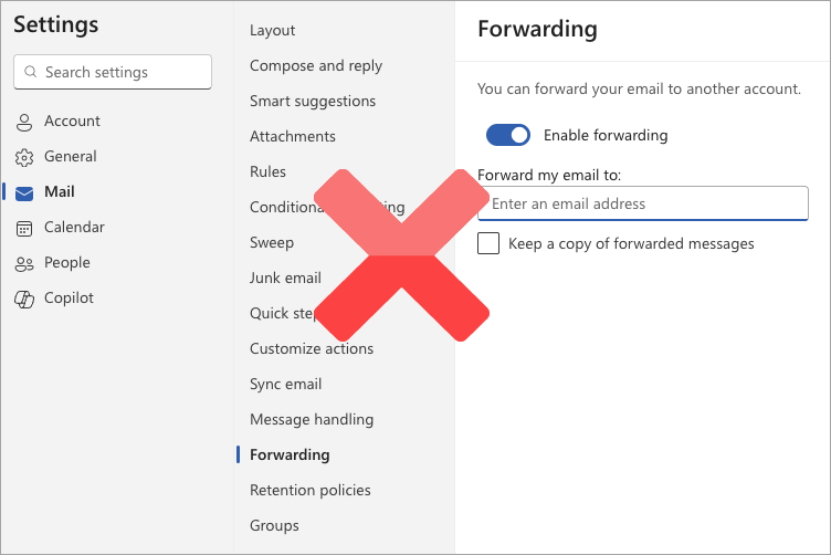 Transport-Level Forwarding: Check that your Microsoft 365 configuration does not use these two transport-level email forwarding methods: