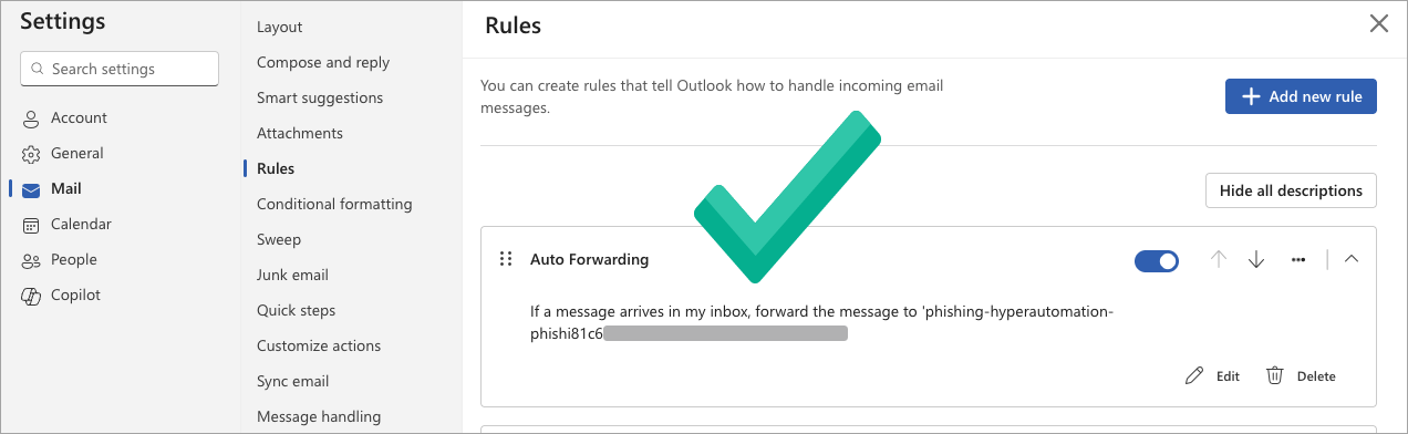 Check the Forwarding Rule in Microsoft 365