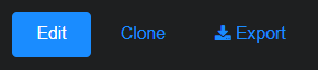Most Stellar Cyber pages with dashboards have several buttons at the top of the dashboard that let you perform actions. Most predefined dashboards have options to Edit, Clone, and Export data.