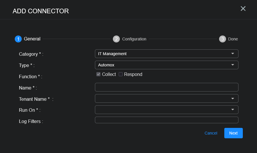 To add an Automox connector in Stellar Cyber: