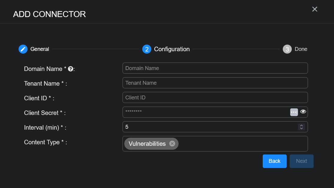Choose the Content Type you would like to collect. The logs for Vulnerabilities are supported.