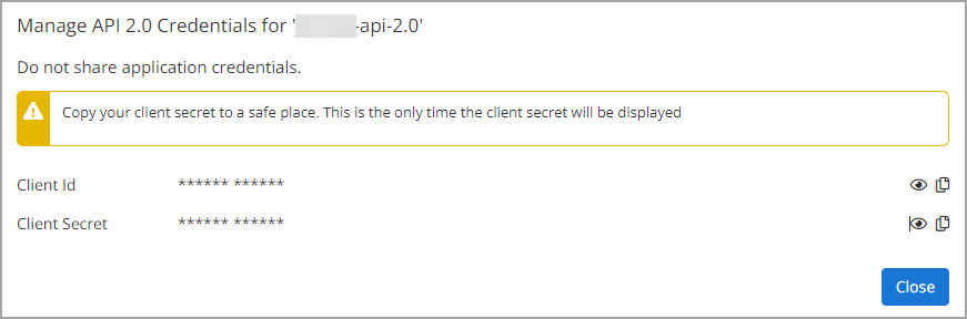 7. A window pops up where you can copy your Client ID and Client Secret.