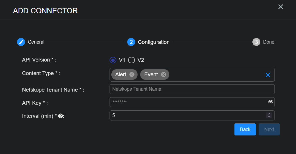 Select the Netskope API Version that you want the connector to use.