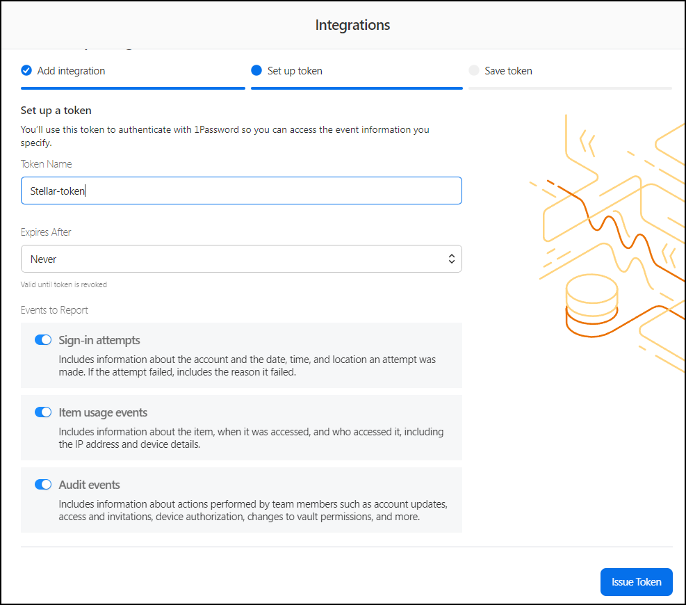 To add an 1Password connector in Stellar Cyber: