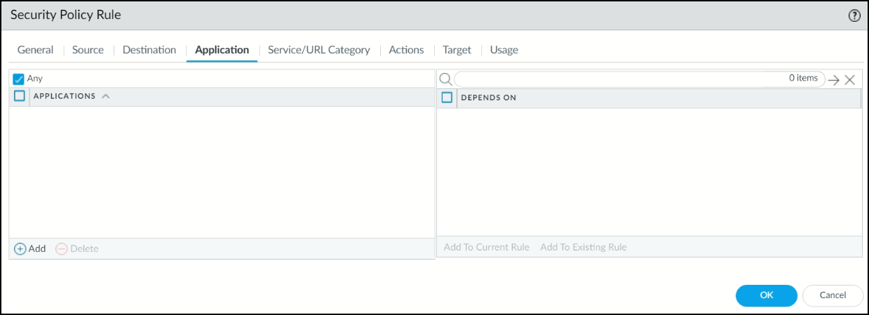 Under the Application tab, select Any.