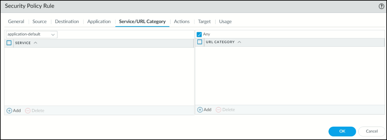 Under the Service/URL Category tab, select Any.