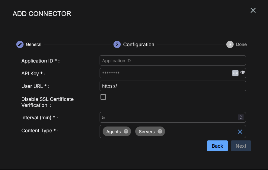 After you have noted the authentication information from the Trend Micro app integration steps, you can add the Trend Micro Apex Central connector in Stellar Cyber: