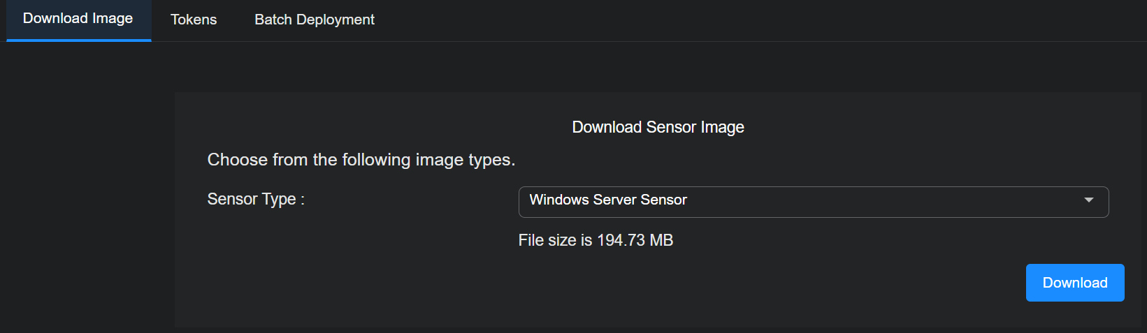 This topic describes how to install a Windows Server Sensor in a supported target environment using the installation file downloaded from the Download Images tab in the System | DATA SOURCE MANAGEMENT | Sensors | Sensor Installation page. Refer to the following sections for details: