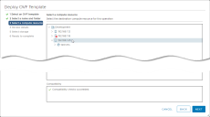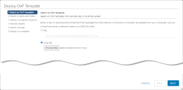 In the Select an OVF Template step, choose the Local file option and use the Choose Files button to navigate to the OVA file you downloaded in Obtaining the Installation File. Once you have selected the OVA file, click Next.