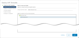 In the Select a name and folder step, provide a name for the virtual machine and select the data center where it will be deployed, as shown below. Then, click Next to continue.