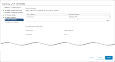 In the Select networks step, use the Destination Network dropdown to select the network where the Modular Sensor's management interface connects. Select a network that can access the DP that will manage the sensor and click NEXT to continue.