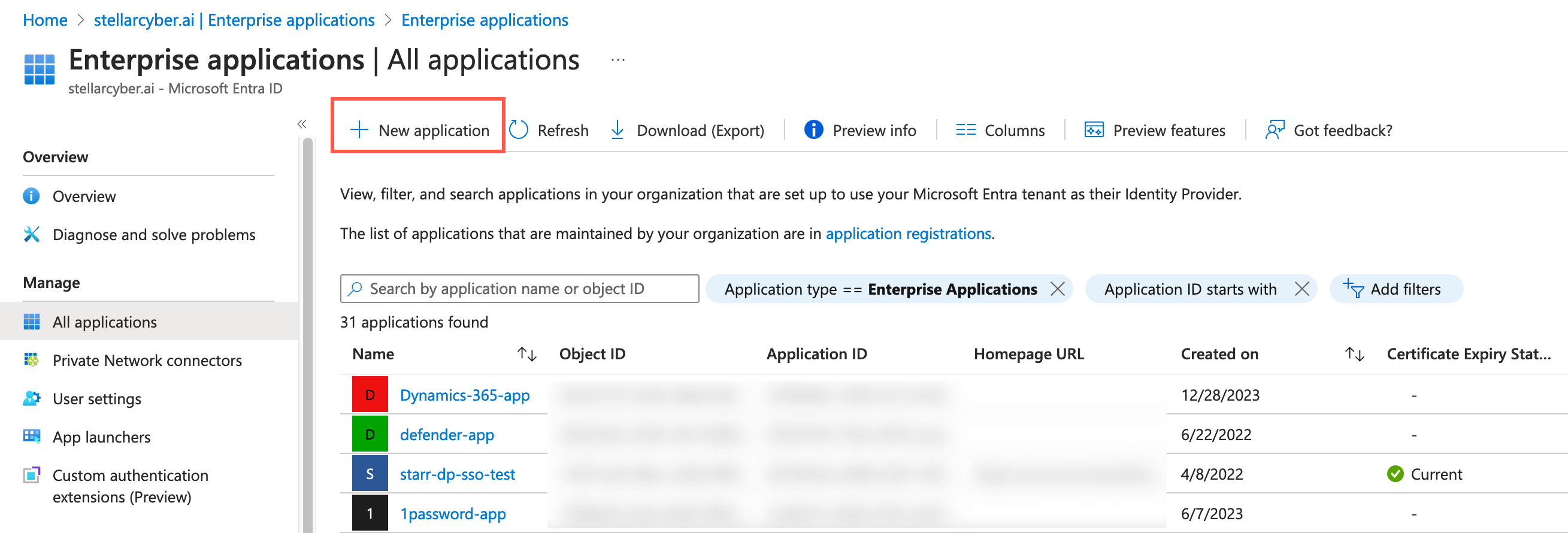 Create a Stellar Cyber Application for SSO in Microsoft Entra ID