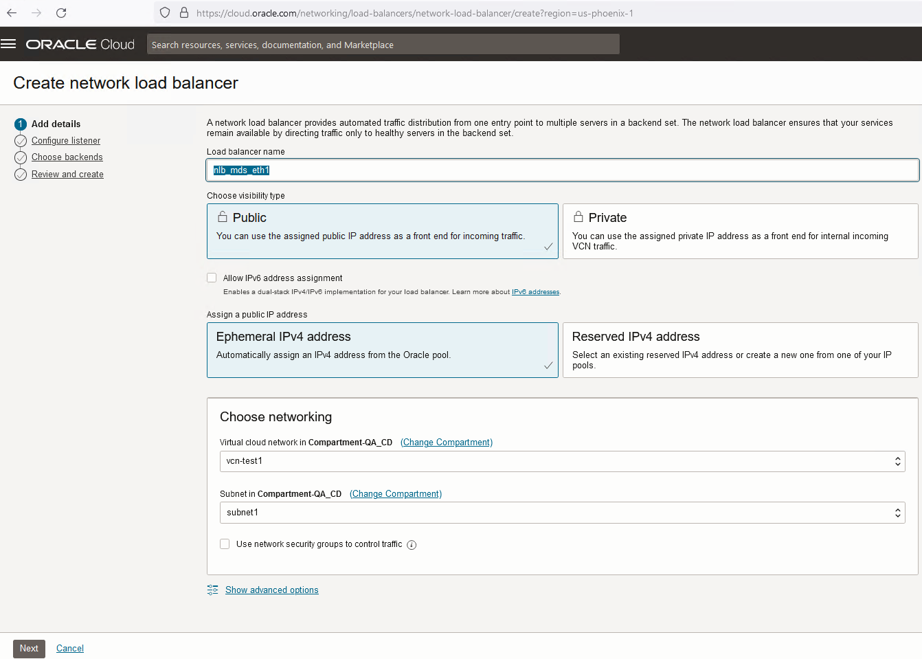 Choose the compartment and availability domain for the new instance. Make sure you choose the availability domain where you want to receive traffic.