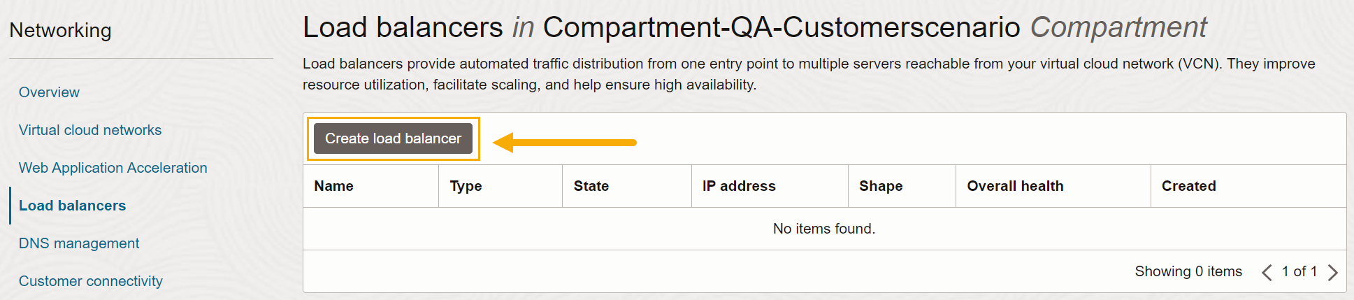 Click the Load balancers entry in the Networking menu at the left of the page. Then, click the Create load balancer button to add a new load balancer.