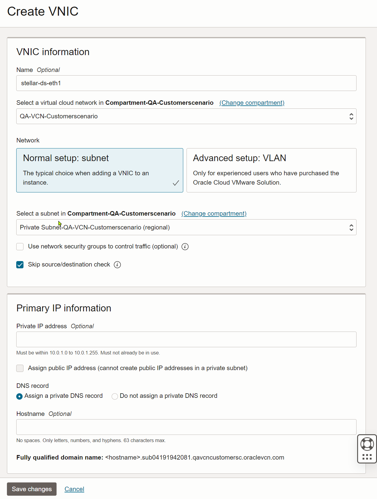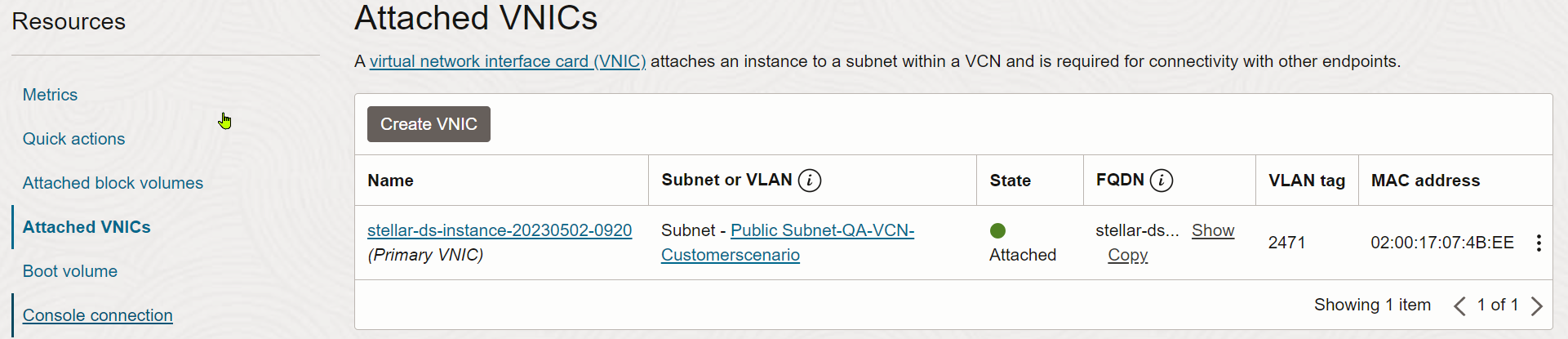 Click the Create VNIC button at the top of the table. Then, supply the following information in the Create VNIC page: