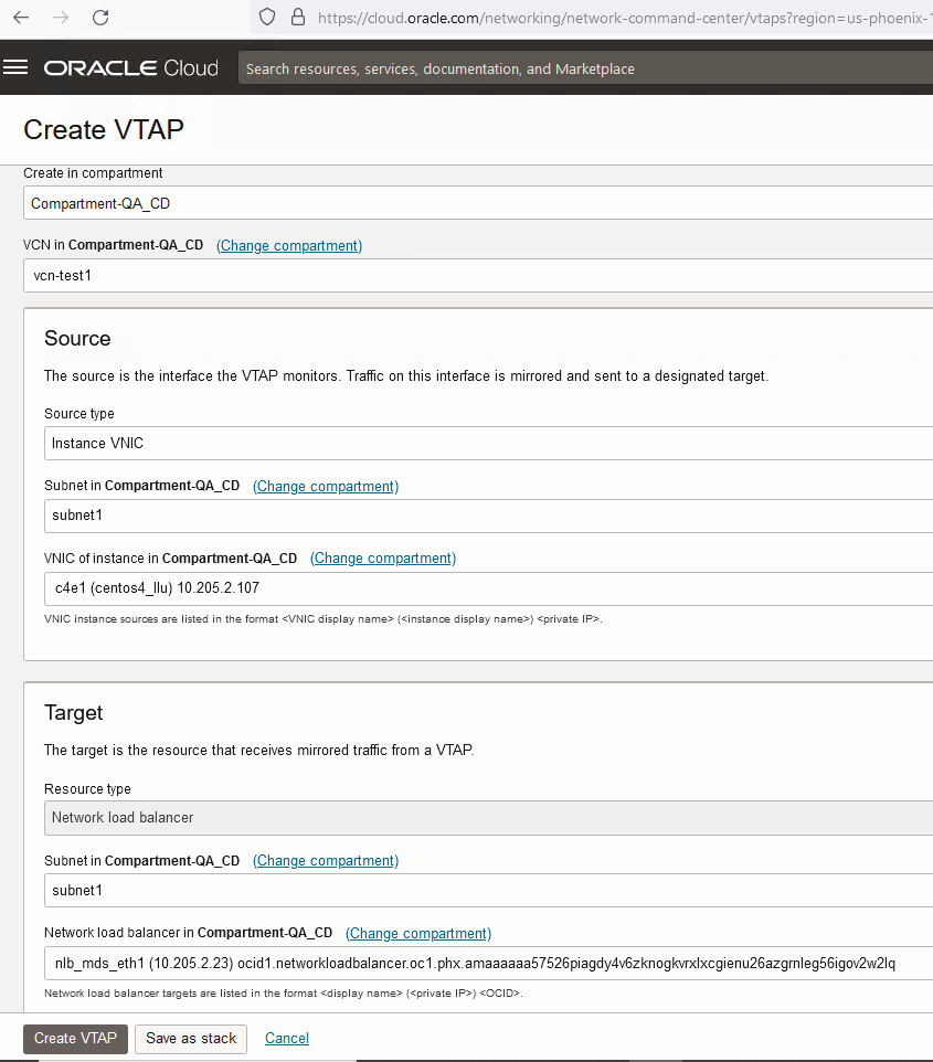 We'll create a VTAP in OCI that mirrors traffic on a specific interface.