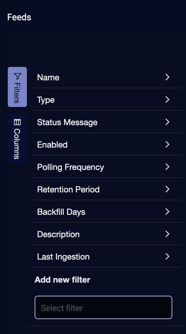 Last Ingestion—timestamp of the last ingestion update from the feed