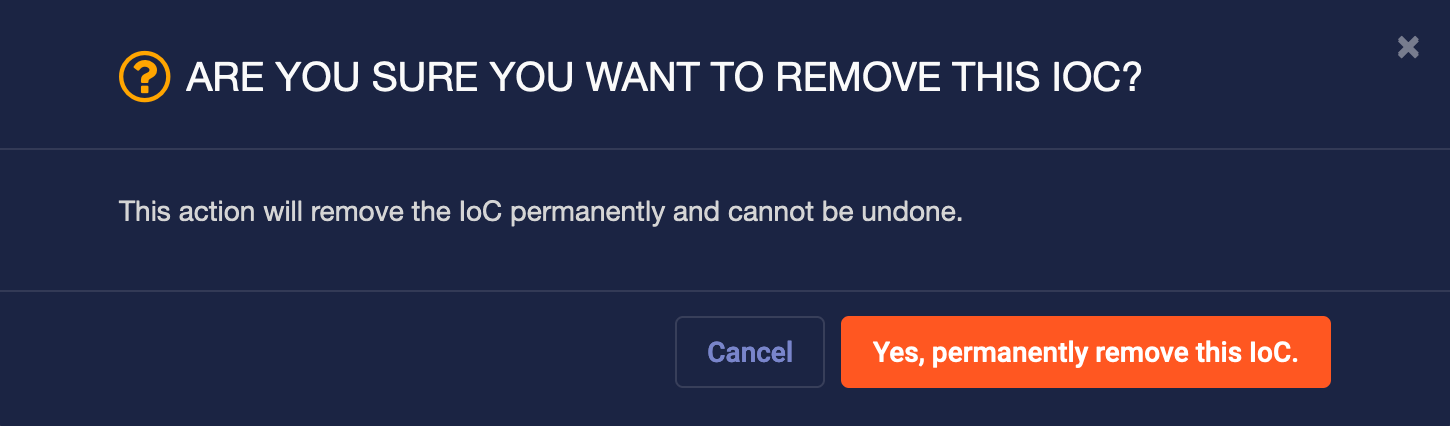 Click Yes, permanently remove this IoC.