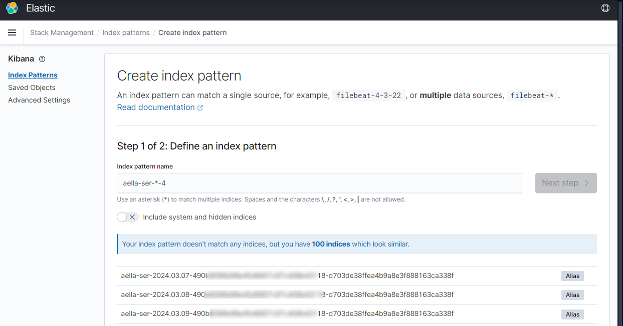 Keep in mind that when you enter index patterns to retrieve data from Stellar Cyber using Elasticsearch, you must use the following format:
