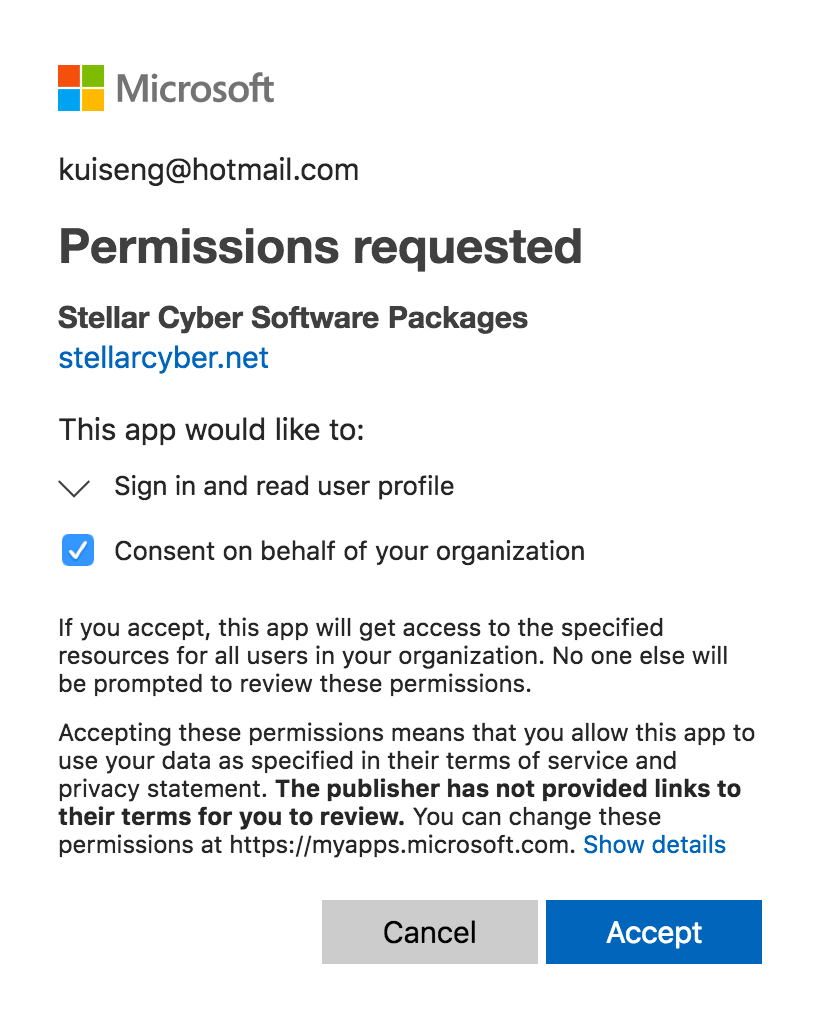 You must authorize the Stellar Cyber software images so that they are available in the Azure portal: