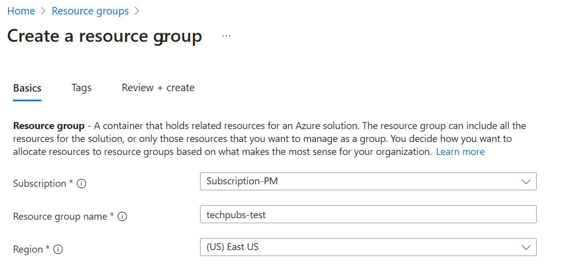 Choose the Region where you want to deploy the resource. Here's how our resource group looks so far: