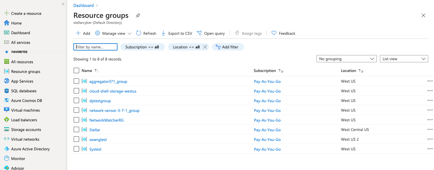 Click the name of the resource group where you want to deploy the sensor. This is either the resource group you just created or an existing resource group.