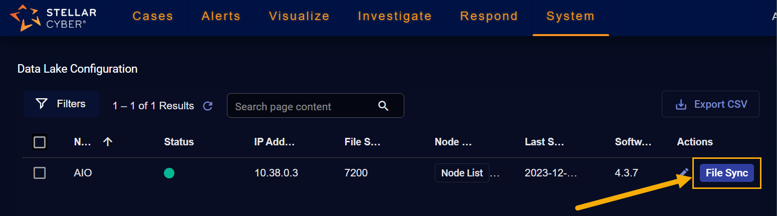 When the File Sync completes, the Status LED in the Data Lake page returns to green.