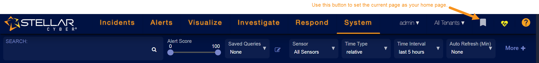 Set a new home page using the Set as homepage button in a different Stellar Cyber page.