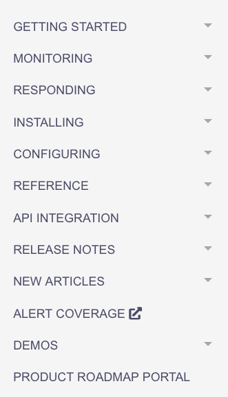 The Knowledge Base content is organized by need to interact with the product. This helps you find content based on the task you need to perform. The menu is structured with overview and analysis topics first, as those are the most likely to be frequently used in the long term. Those menu options are followed by administrative and reference topics, which will hopefully be less needed over time as you use the product. This task-based structure augments the product's contextual links, which provide you with UI-oriented navigation of the Knowledge base.
