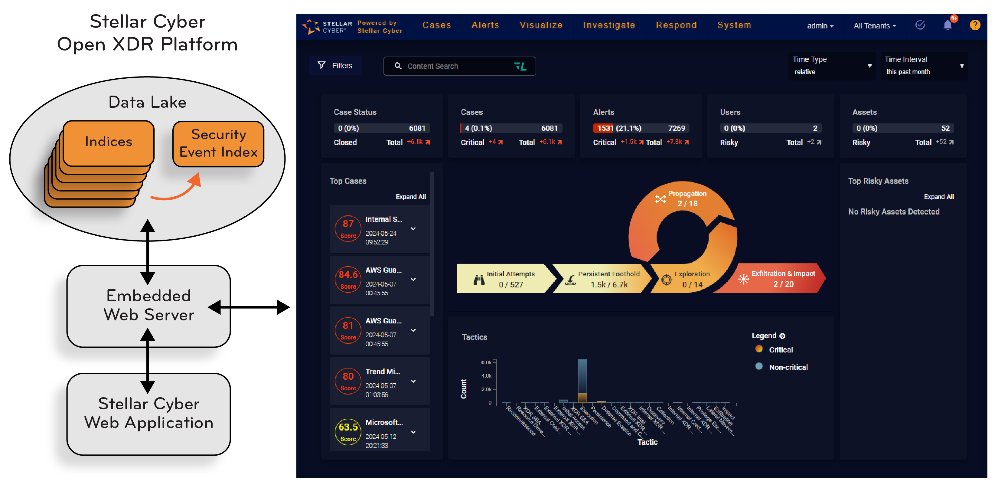 - Data Lake and Indices: The Data Lake is the repository of the information that Stellar Cyber stores. The data is organized into indices, which are categories that Stellar Cyber uses to group data. The indices help make searching much more efficient and effective. An index that stores information directly from the sensors or collectors is referred to as a "raw" index. The security index contains enhanced data based on data from one or more of the raw indices.