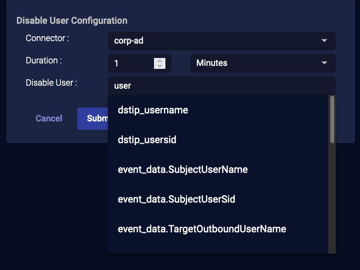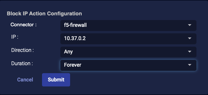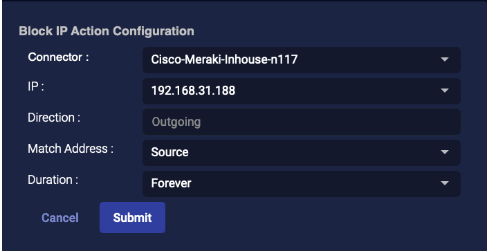- Click Submit. A remediation signal on the target is immediately triggered from the SentinelOne service associated with your connector.