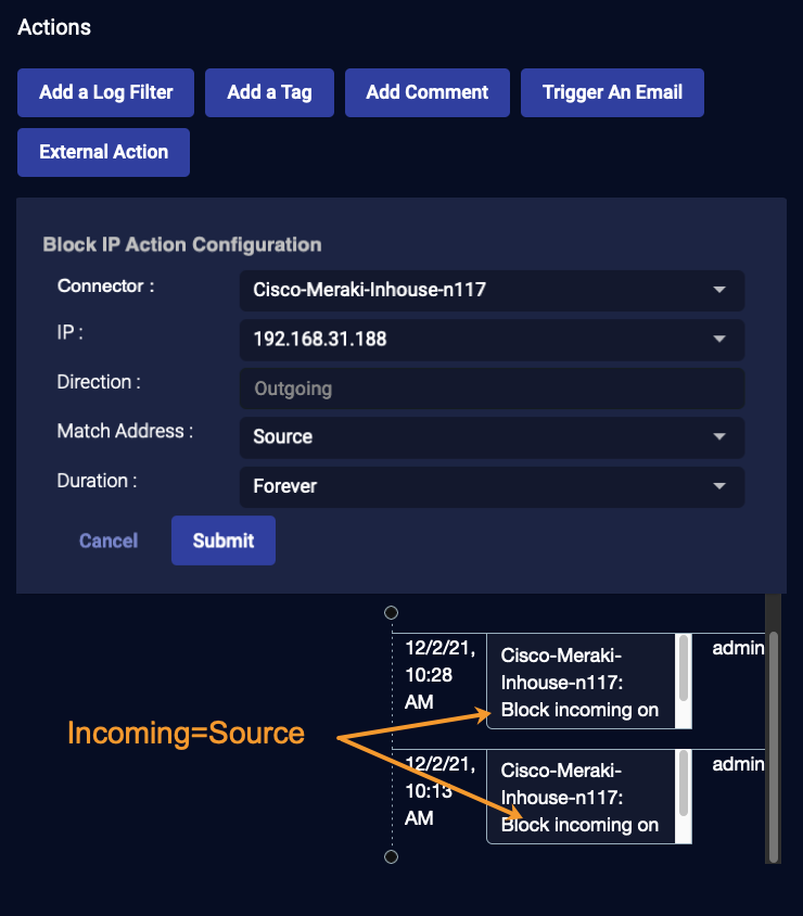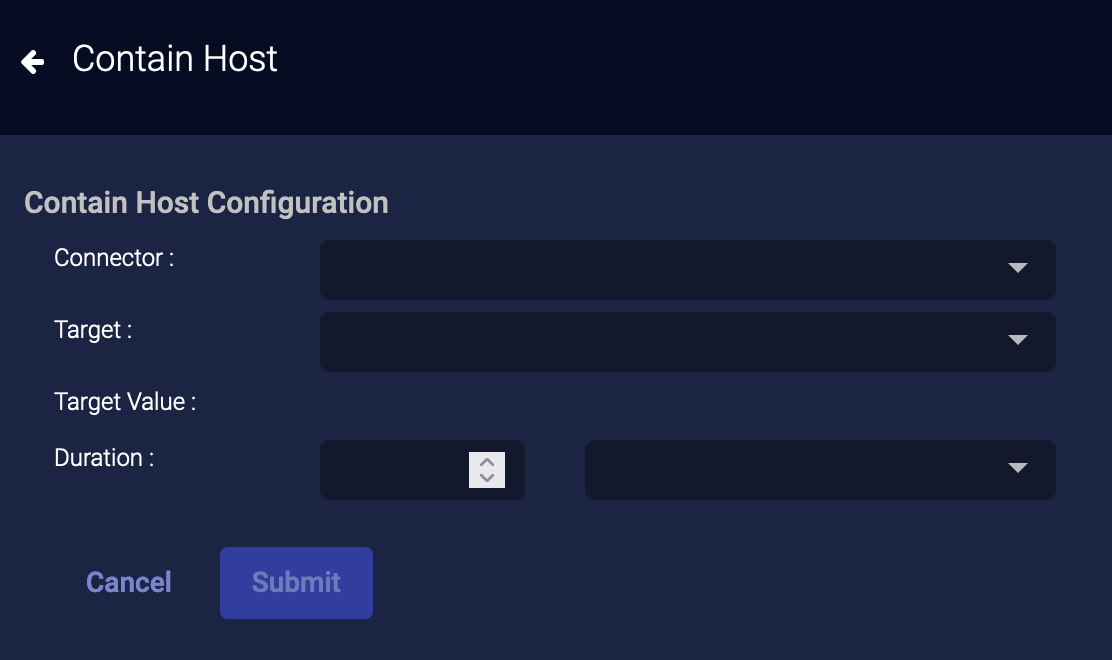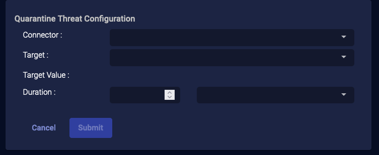 Click Submit. A quarantine on the target is immediately triggered from the SentinelOne service associated with your connector.