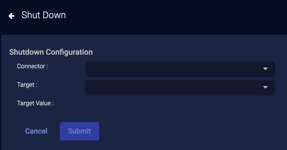 From the dropdown menu, select the connector you want to use to perform the shut down.