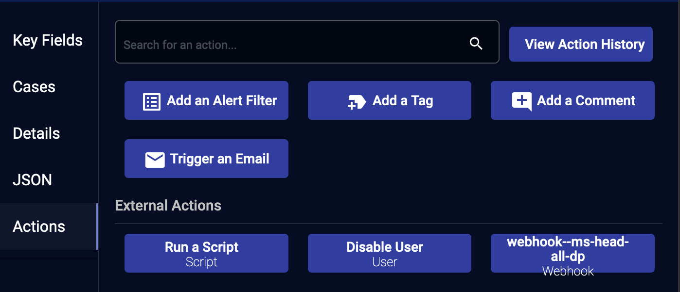 You can manually trigger a Webhook action. The action may have been created from a customization in the Universal Webhook Responder or from a predefined template in the Universal Webhook Responder or ESET Responder.