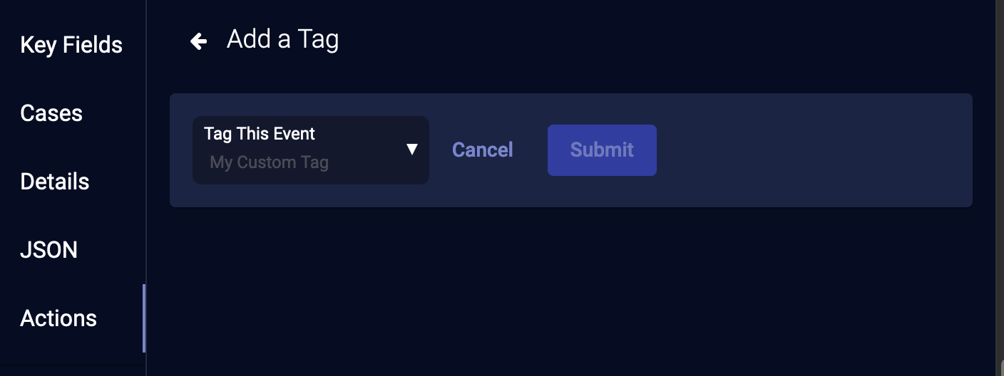 Tags – If a user has assigned tags to the event, the tags appear in this section. (You can add tags in the Actions section, described next.)