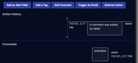Forwarding Link – To the right of the alert name, click the forwarding link button to copy a direct URL to access this detail page independently of the event list.